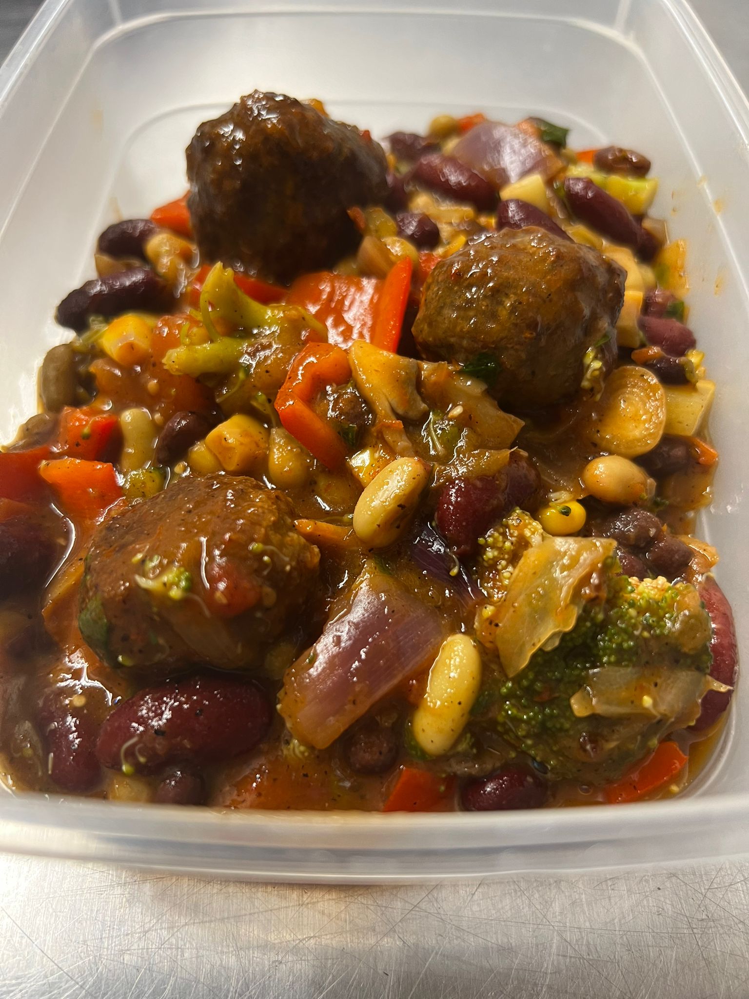 Op smaak gebracht met huisgemaakte groentenbouillon en specerijen werd het weer een prima maaltijd.