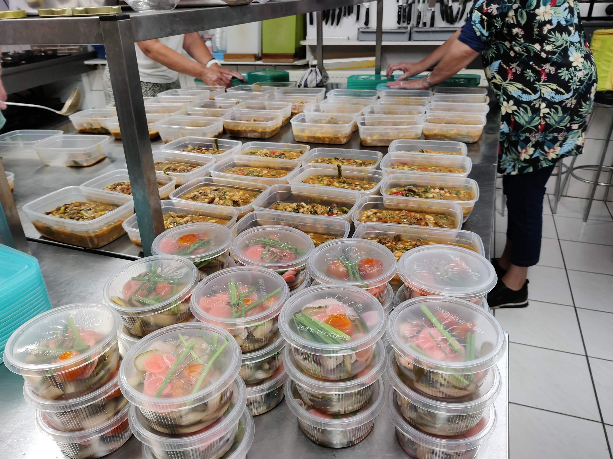 Hieronder een impressie van de pan en het verdelen van de maaltijden.