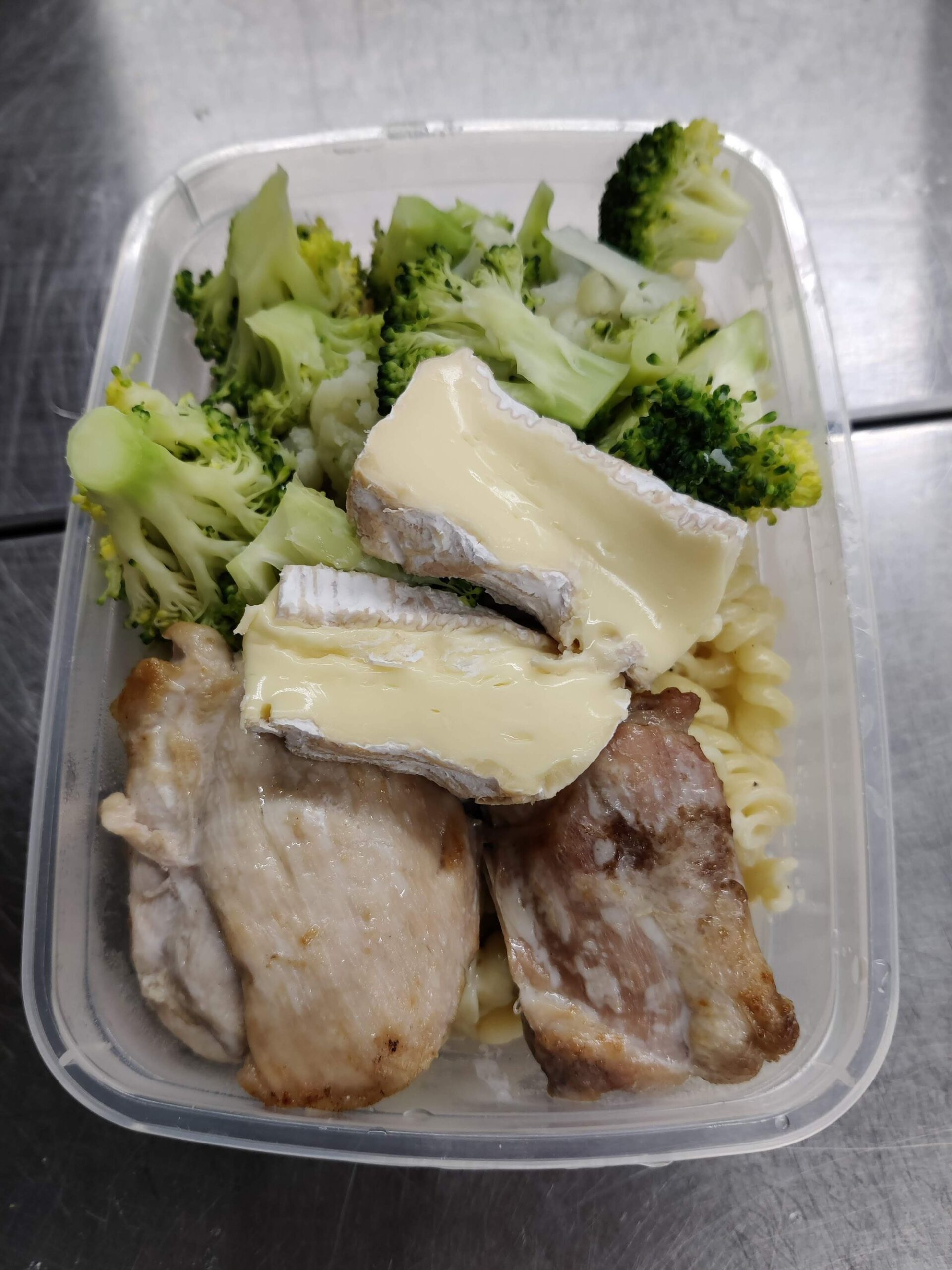 De broccoli en bloemkool stoomden we in een grote pan met een laagje water en de kip werdt gebakken en nagegaard in de oven. Alles in de bakjes, plakje kaas er over en klaar!