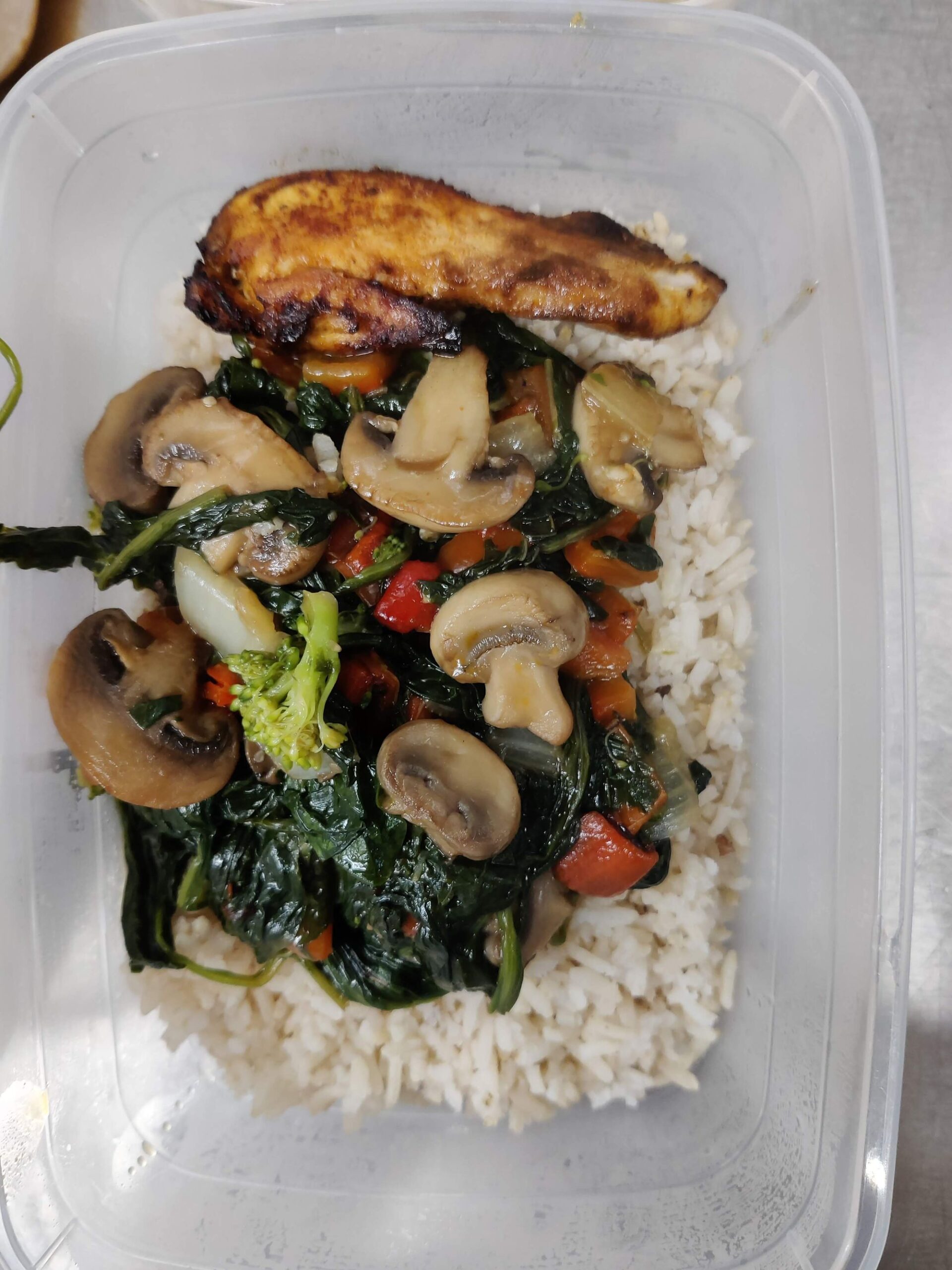Dat was eigenlijk wat weinig maar er was ook niet heel veel meer, ik pakje nog even alle champignons en alle paksoi die er was. En er was 2300 gram kippenhaasjes. Dat bleken er 53 stuks te zijn dus dat kwam mooi uit, genoeg voor iedereen en een paar over om te proeven.